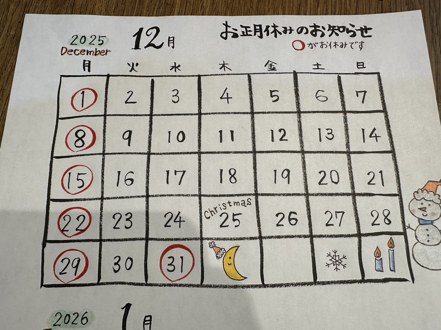 12月の営業日カレンダーも載せておくのでご確認ください!